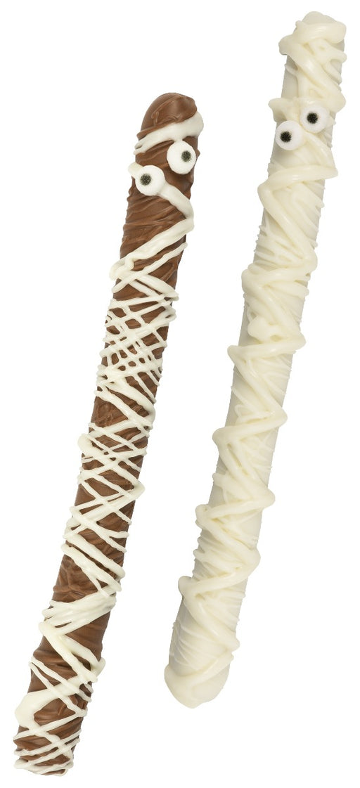 Get wrapped up in deliciousness with Morkes Chocolates' Mummy Pretzels! Bite into the chocolate coating to reveal the salty pretzel, perfect for sa...