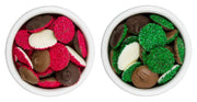 This charming gift features a delightful choice of chocolate-covered pretzel twists (1/2 lb) OR colorful chocolate nonpareils (3/4 lb), beautifully presented in a clear box adorned with cheerful Santa, snowman, and winter scenes.