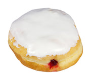 Our yeast donut is filled with real raspberry jelly and topped with either sugar or white icing, perfect for any sweet tooth.